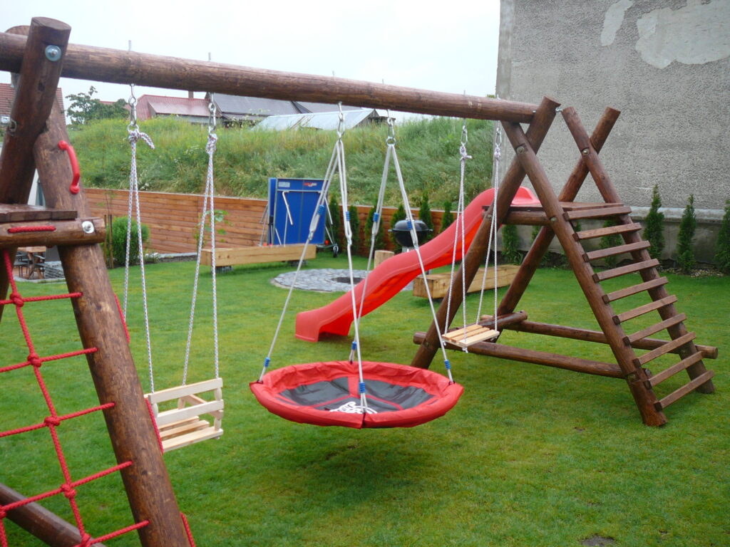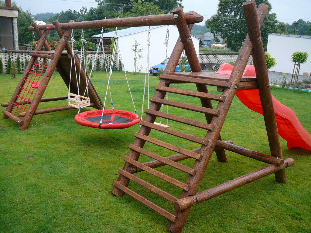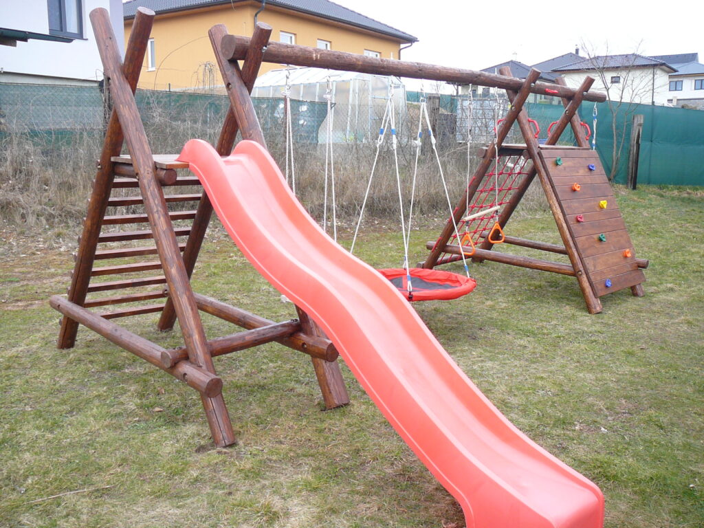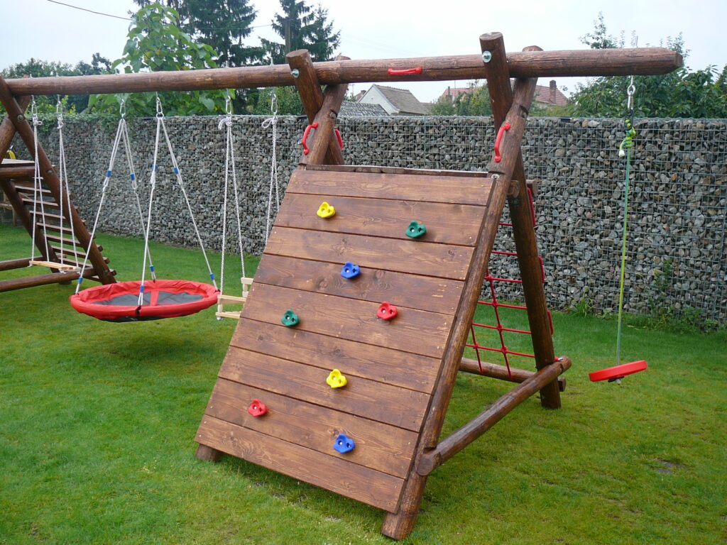 Největší sestava s mnoha variantami herních prvků. Nejvíce rozvíjí pohybové aktivity dětí. Vhodná na prostornější pozemek. Délka této sestavy je přibližně 6 m (počítáno 2x houpačka + 1x houpací kruh-hnízdo). Rozměr středového prostoru mezi podpěrami lze přizpůsobit požadavkům. Tento typ konstrukce má lezeckou stěnu a lezeckou lanovou síť, středový prostor pro závěsné prvky, podestu pro skluzavku a přístup k ní po lezeckém žebříku.