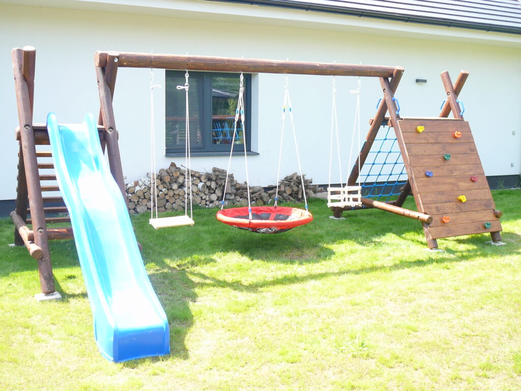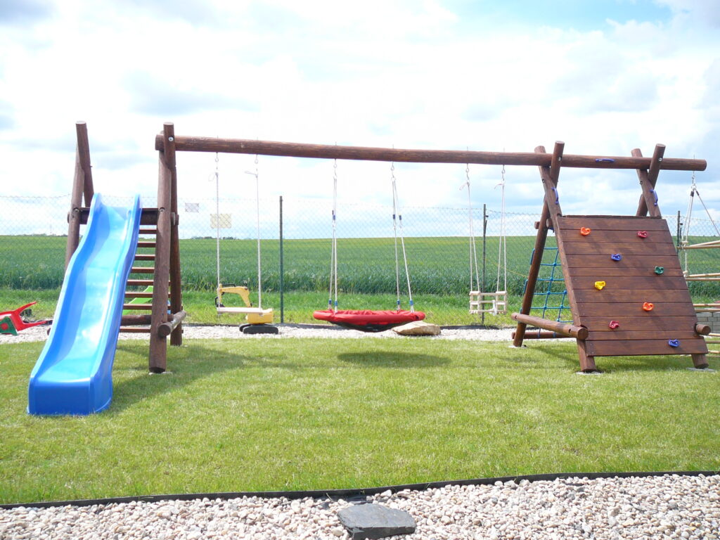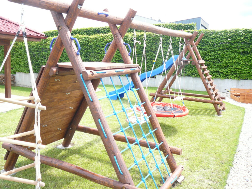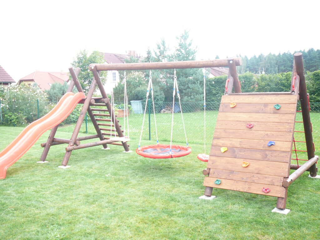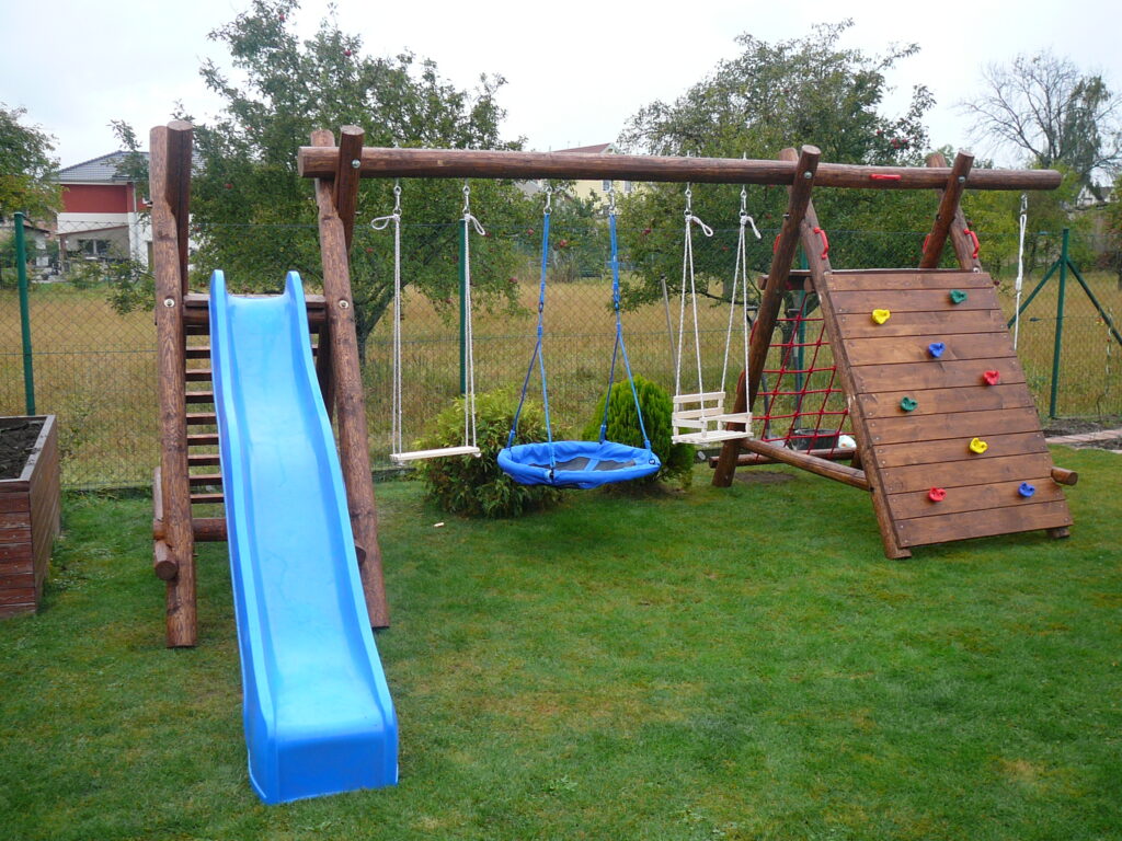 Největší sestava s mnoha variantami herních prvků. Nejvíce rozvíjí pohybové aktivity dětí. Vhodná na prostornější pozemek. Délka této sestavy je přibližně 6 m (počítáno 2x houpačka + 1x houpací kruh-hnízdo). Rozměr středového prostoru mezi podpěrami lze přizpůsobit požadavkům. Tento typ konstrukce má lezeckou stěnu a lezeckou lanovou síť, středový prostor pro závěsné prvky, podestu pro skluzavku a přístup k ní po lezeckém žebříku.